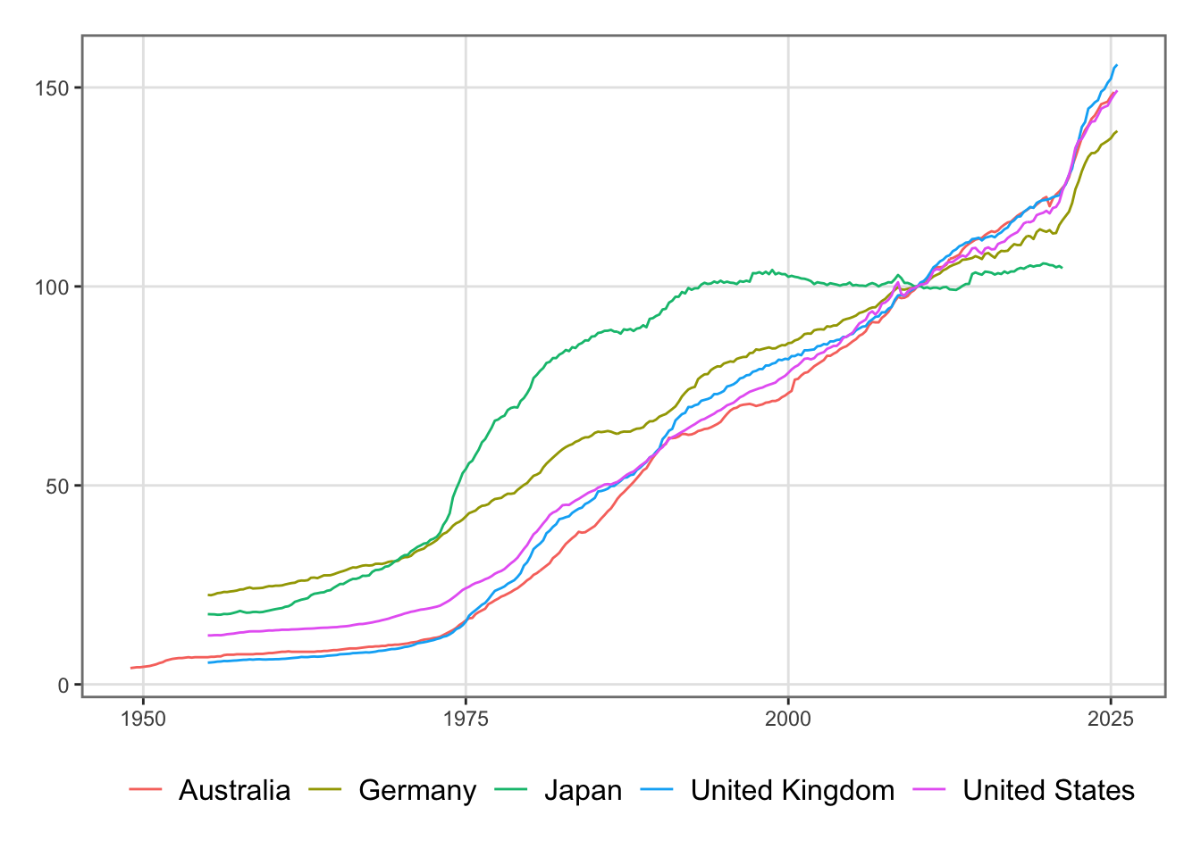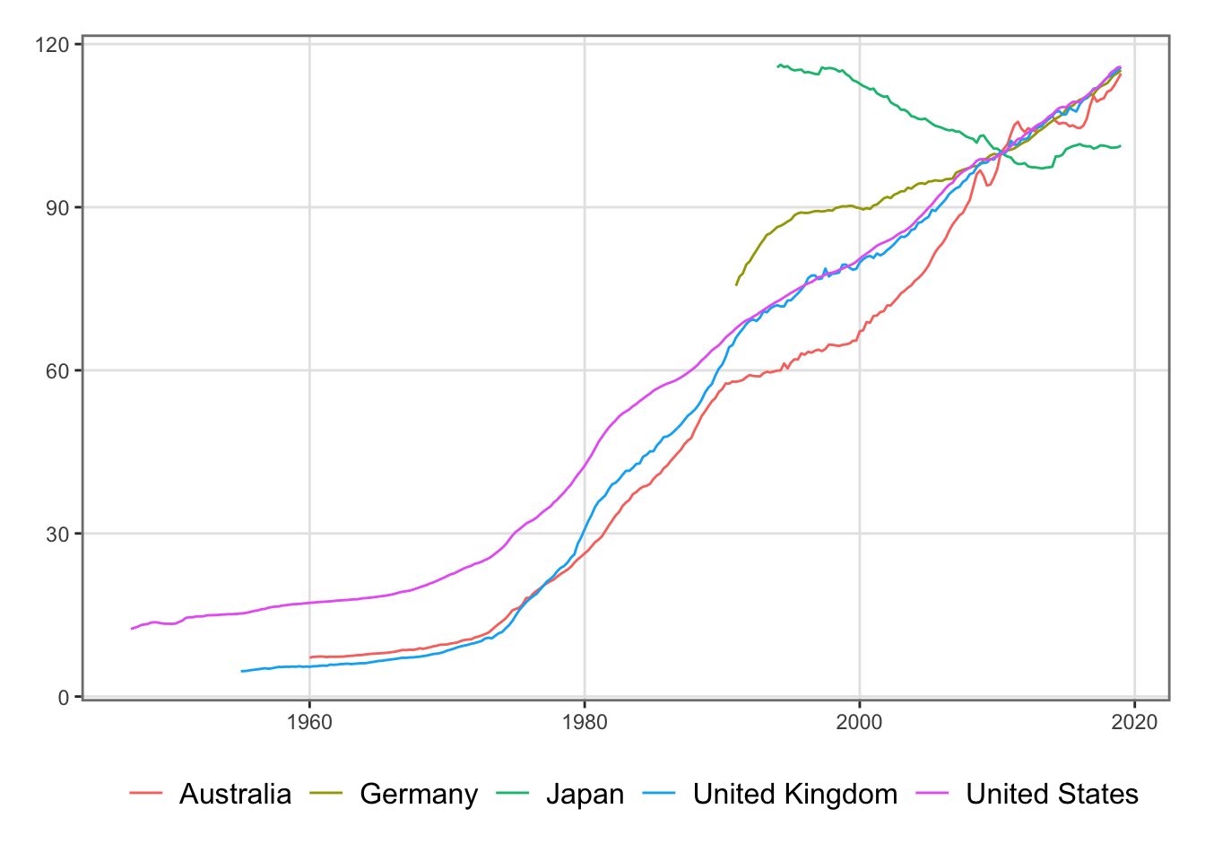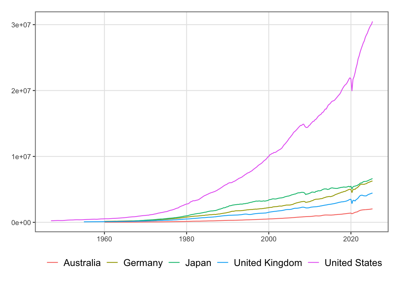 To account for these external effects, we construct a synthetic rest-of-world GDP based on the top five partners: Australia, Germany, Japan, the United Kingdom, and the United States.