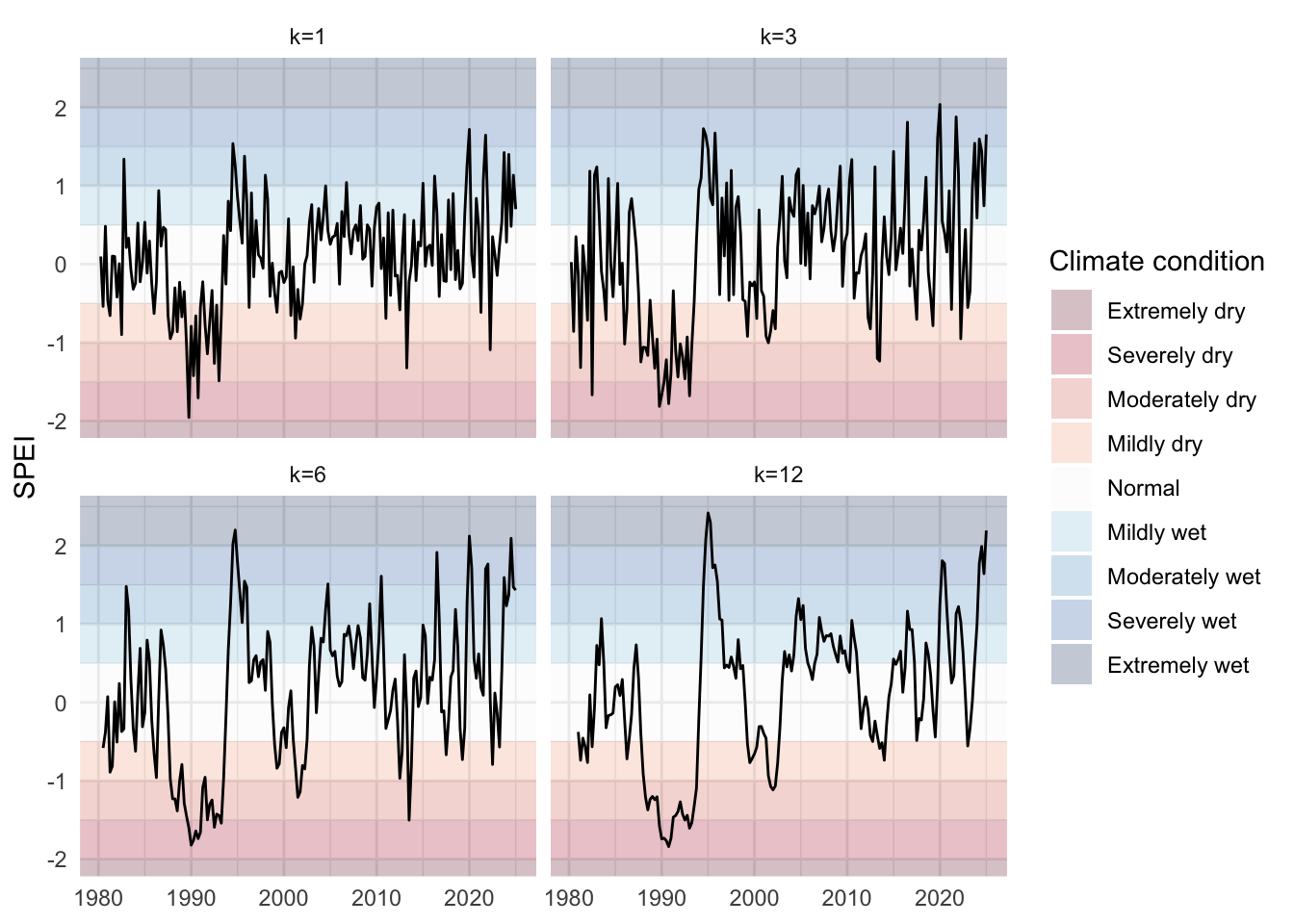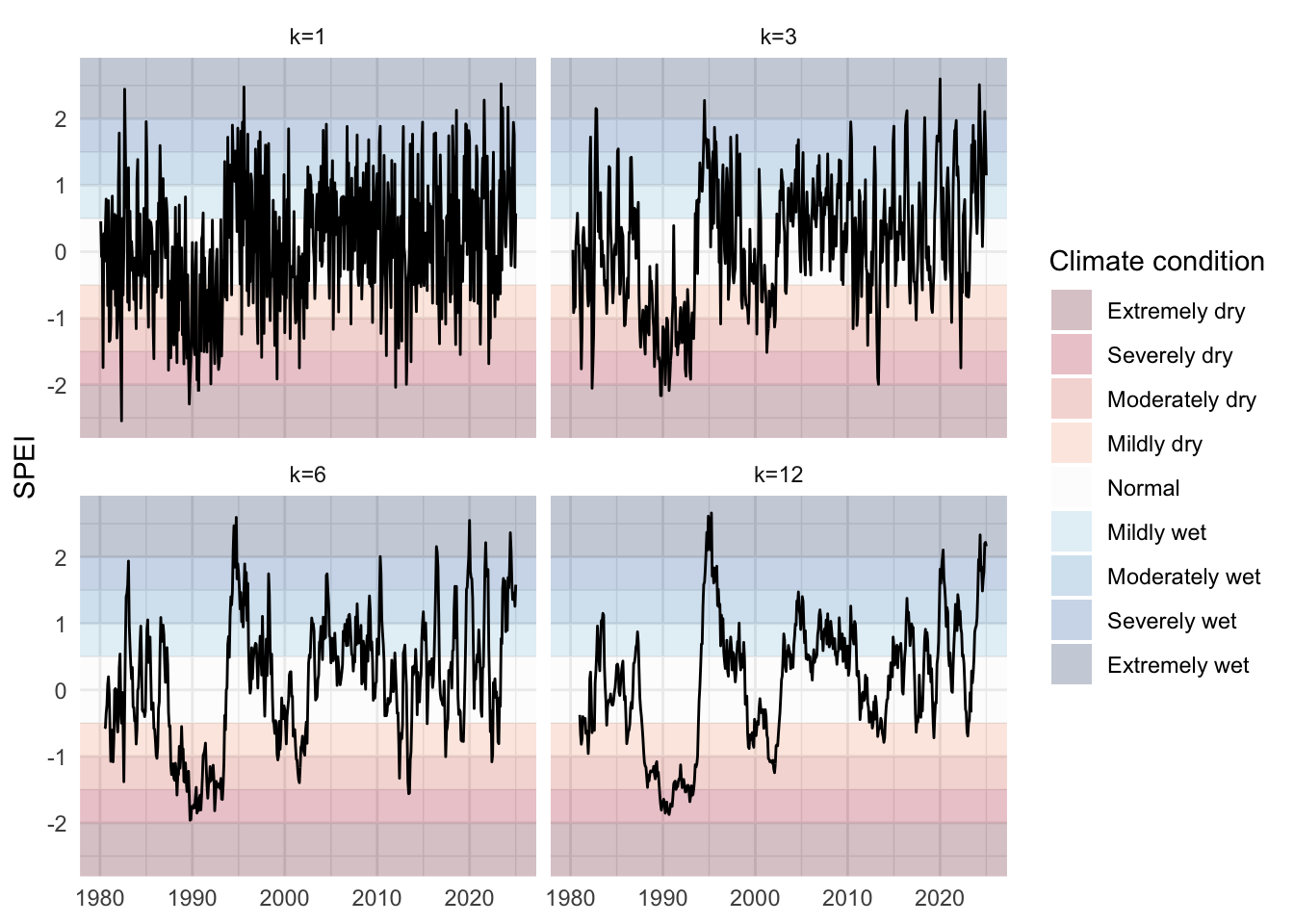 Vicente-Serrano, Sergio M., Santiago Beguería, and Juan I. López-Moreno. 2010. “A Multiscalar Drought Index Sensitive to Global Warming: The Standardized Precipitation Evapotranspiration Index.”Journal of Climate 23 (7): 1696–1718. https://doi.org/10.1175/2009jcli2909.1.