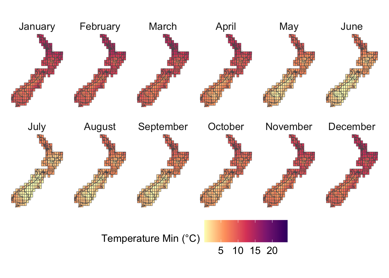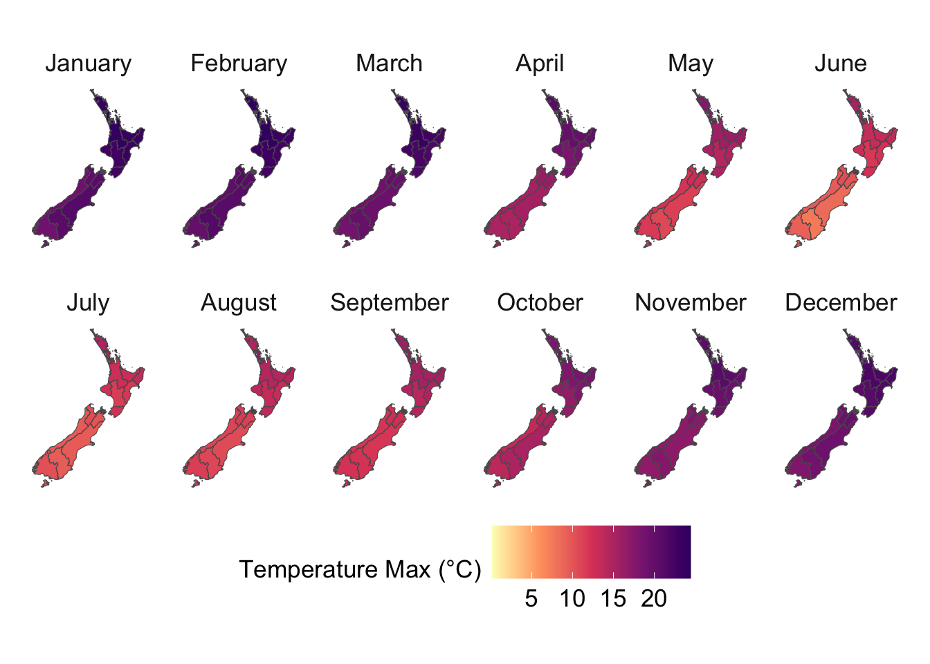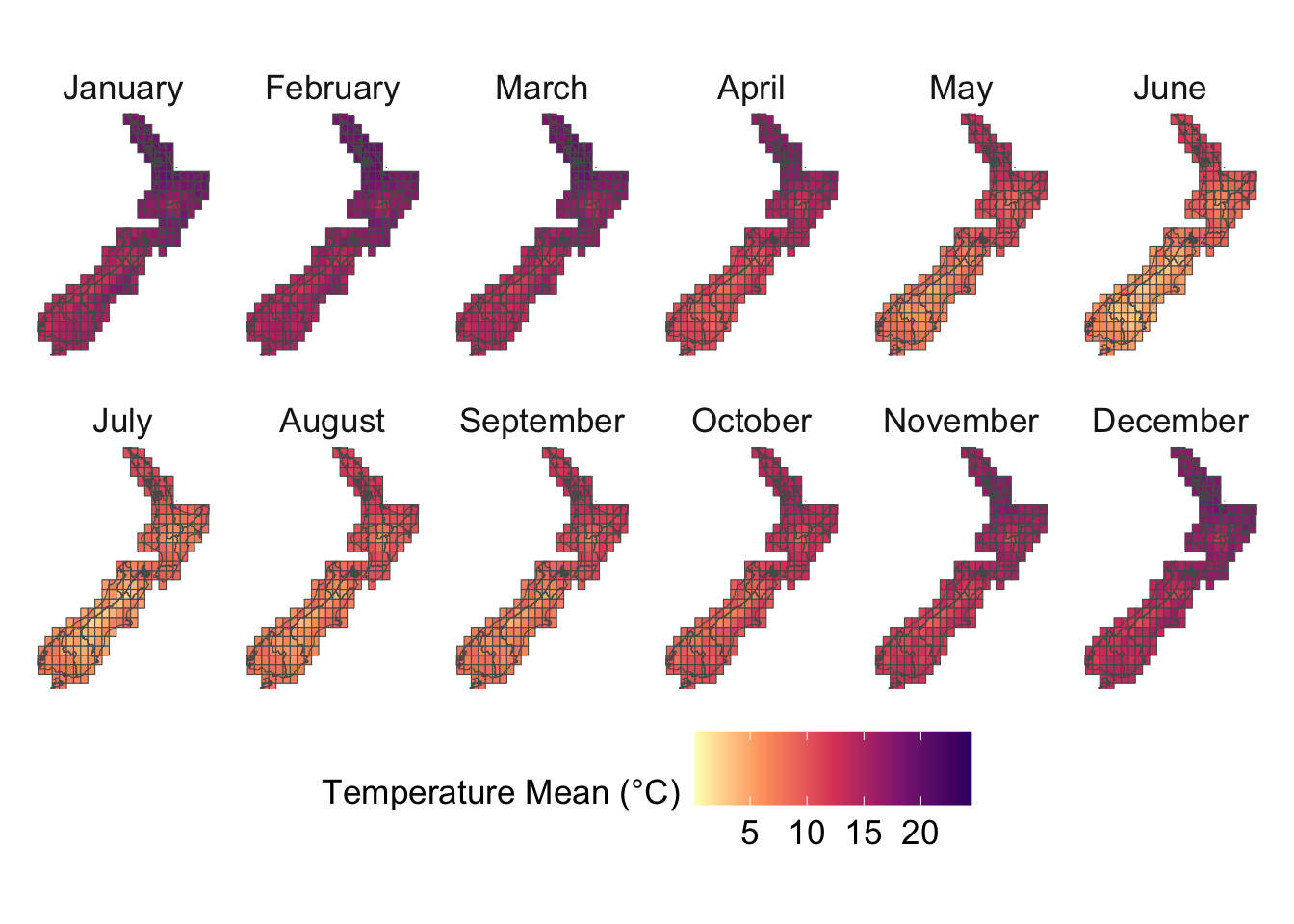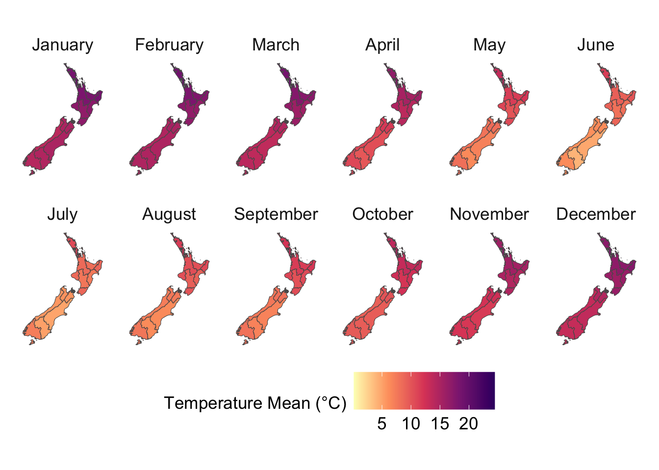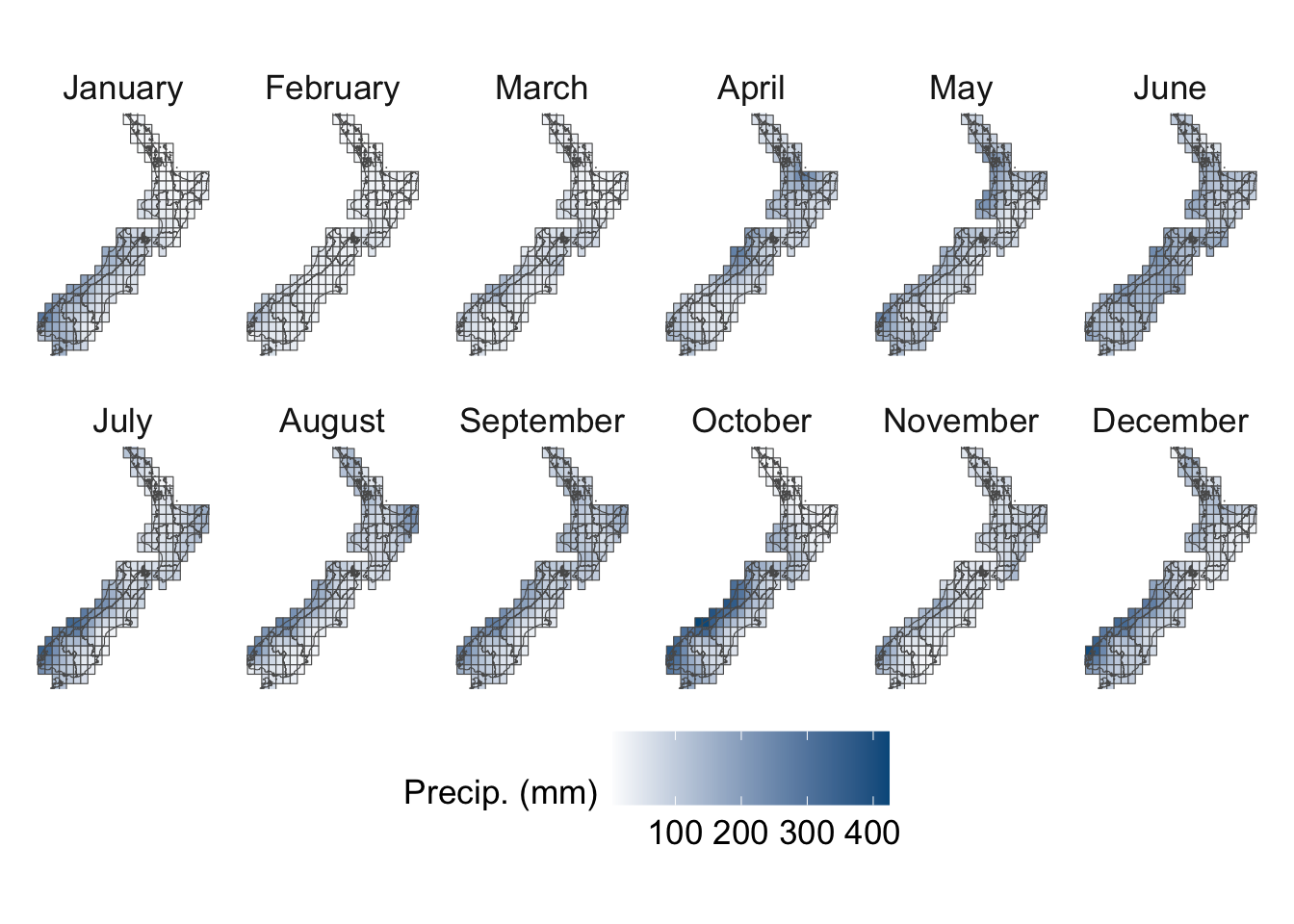 Figure 5.31: Precipitation in New Zealand on a monthly basis.