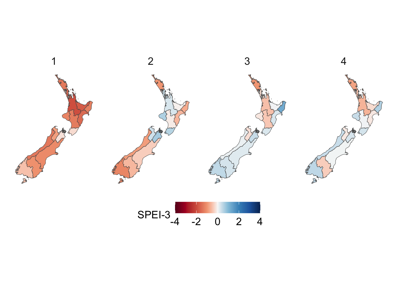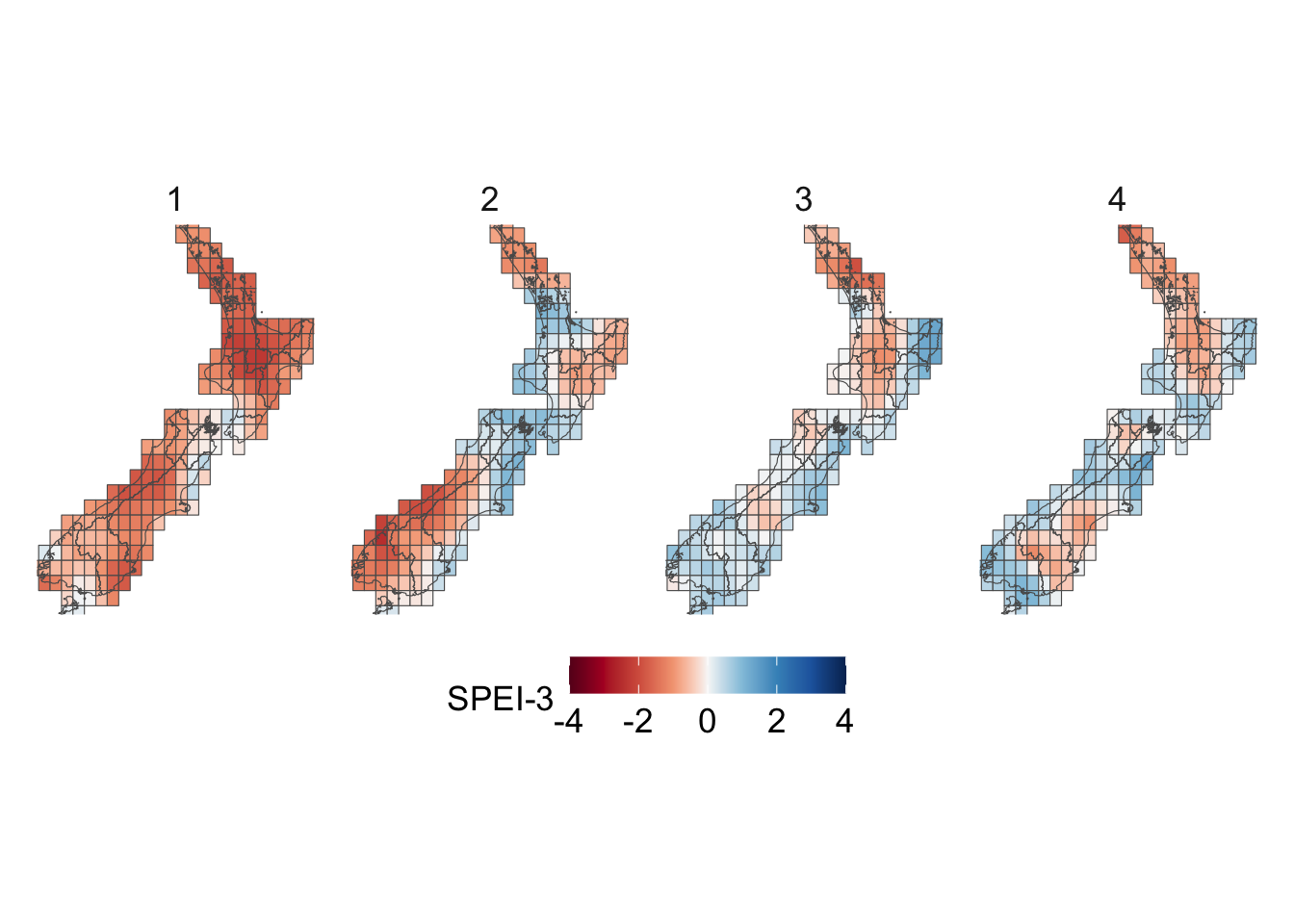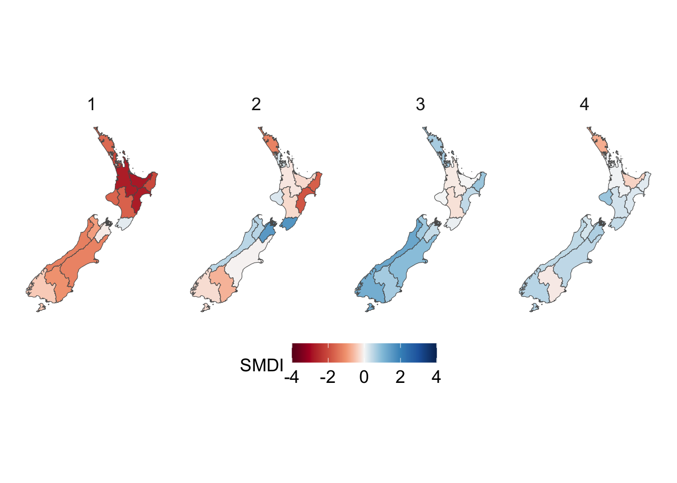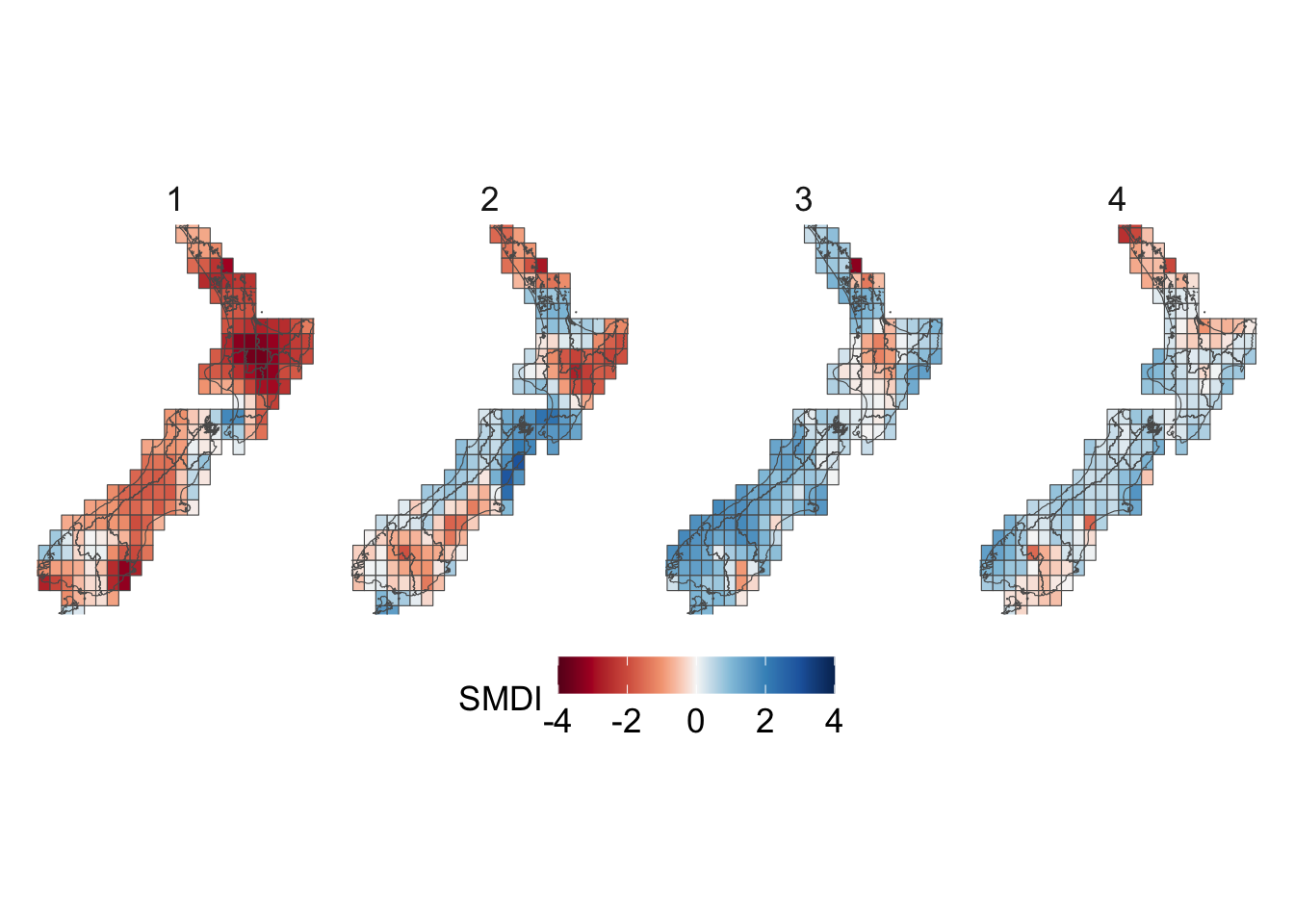 Figure 5.36: Soil Moisture Deficit Index in New Zealand, quarterly basis.